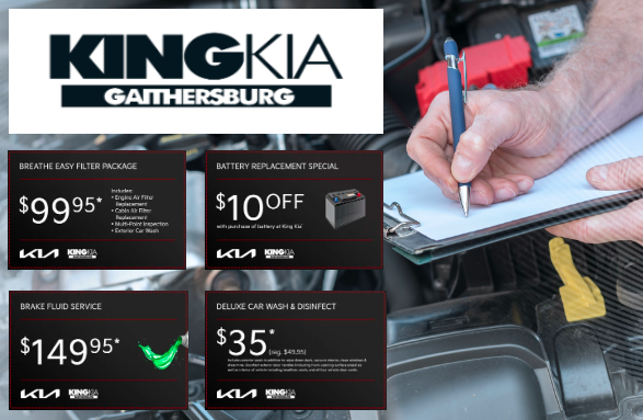 With winter right around the corner – it’s time to quit playing around and service your vehicle with the team here at King Kia! Whether you are in need of some serious service for your Kia or something a little smaller, our team can take care of all of your needs. We encourage you to browse our service specials listed below and head over to our page to schedule your next service appointment before it’s too late and you’re stranded on the side of the road. Let’s get things started right here, right now!